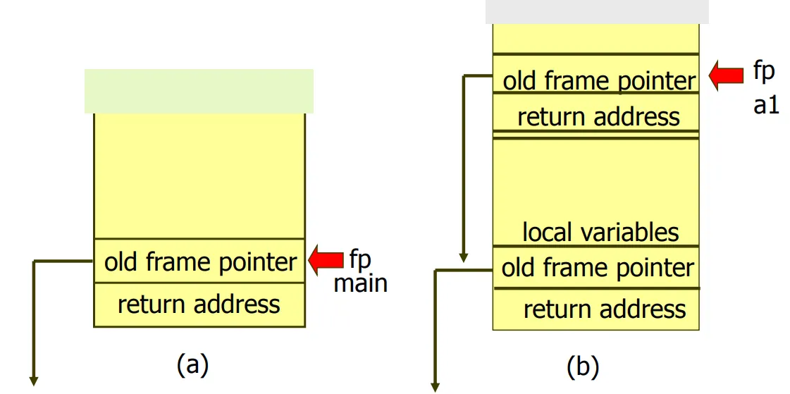 被称为 活动记录(activation record)或 栈帧(stack frame)。