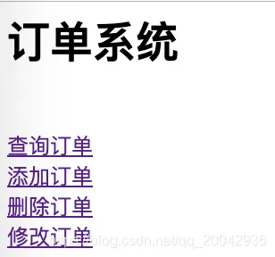 @Controller public class OrderController { // 首页 @RequestMapping("/") public String index() { return "index"; } // 查询订单 @RequestMapping("/showOrder") public String showOrder() { return "showOrder"; } // 添加订单 @RequestMapping("/addOrder") public String addOrder() { return "addOrder"; } // 修改订单 @RequestMapping("/updateOrder") public String updateOrder() { return "updateOrder"; } // 删除订单 @RequestMapping("/deleteOrder") public String deleteOrder() { return "deleteOrder"; } // 自定义登陆页面 @GetMapping("/login") public String login() { return "login"; } }