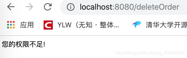 2.点击查询和添加链接,可以访问。但是删除和修改链接失败,因为代码里没有赋予其权限。