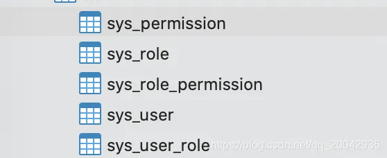 SQL脚本执行完成后,会生成5张表,相当于把上一篇博客《微服务技术系列教程(38)- SpringBoot -整合SpringSecurity》的权限配置内容全部配置到数据库了,从数据库中读取: