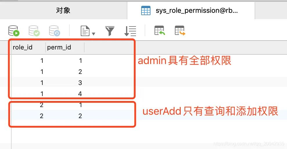 比如:userAdd 不能删除或者修改订单,现在要求userAdd可以修改订单,那么,修改数据库的sys_role_permission表