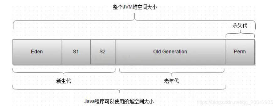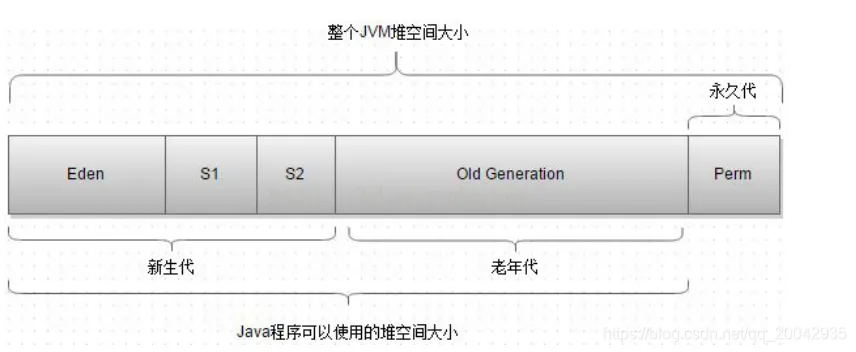 - JVM中堆空间可以分成三个⼤区,新⽣代、⽼年代、永久代