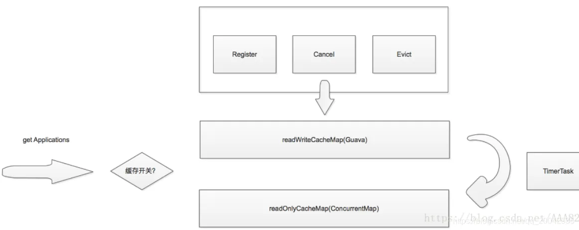 第⼀层缓存:readOnlyCacheMap,本质上是ConcurrentHashMap:这是⼀个JVM的CurrentHashMap只读缓存,这个主要是为了供客户端获取注册信息时使⽤,其缓存更新,依赖于定时器的更新,通过和readWriteCacheMap 的值做对⽐,如果数据不⼀致,则以readWriteCacheMap 的数据为准。readOnlyCacheMap 缓存更新的定时器时间间隔,默认为30秒