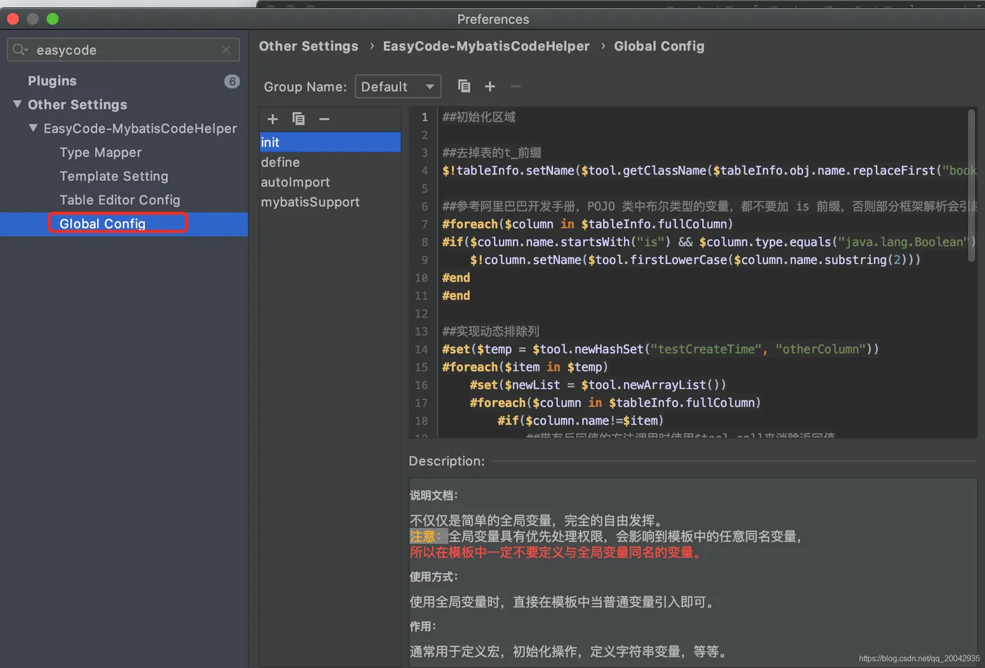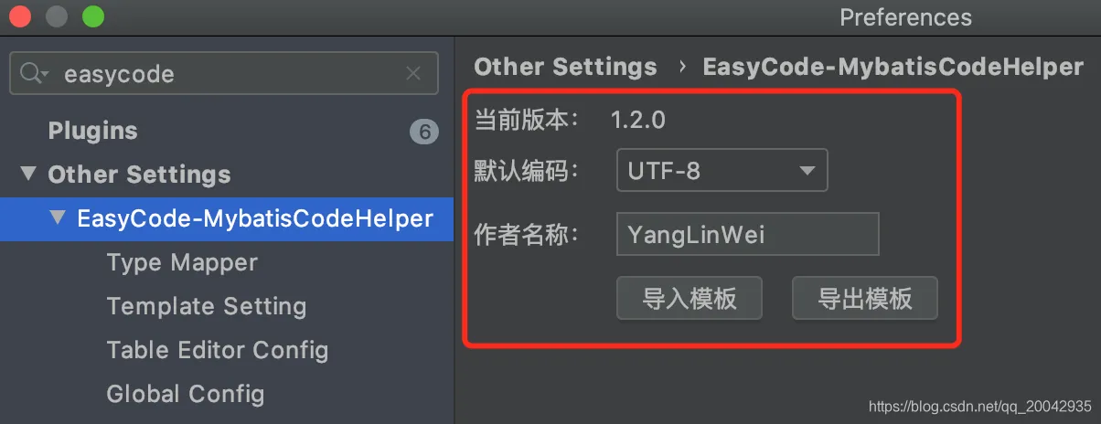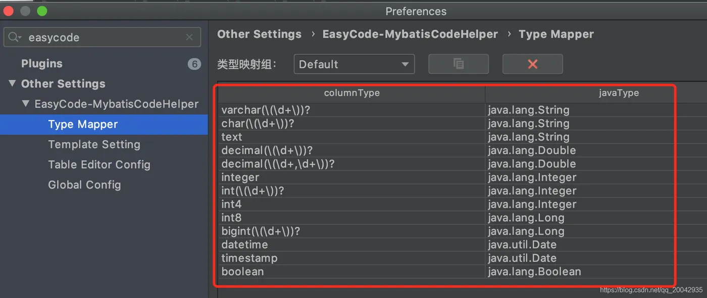 打开Preferences,输入easycode,可以看到可以配置的内容如下: