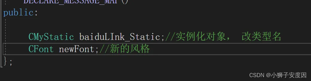 变量会被实例化在主窗口的头文件中, 将继承类的头文件导入再把CStatic改为新的类名, 请看代码: