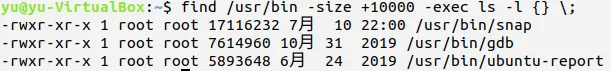 查找/user/bin目录下所有大小超过1万字节的文件并用长格式显示