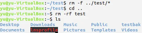 回到上层目录,利用rm命令删除目录test和其下所有文件