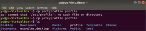 利用cp命令复制系统文件/etc/profile到当前目录下