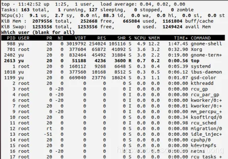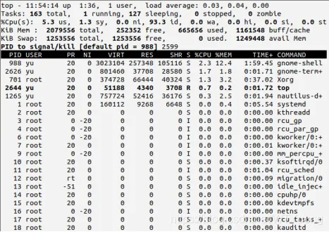 top动态显示当前的进程