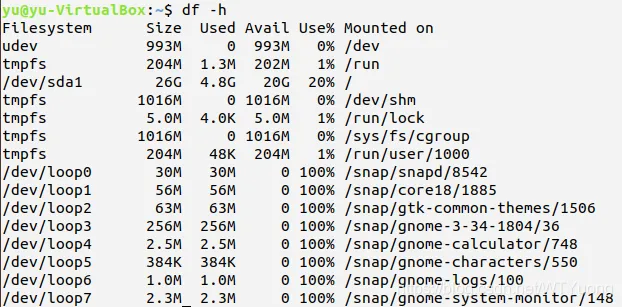 利用df命令显示系统的硬盘分区及使用情况
