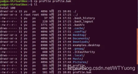 复制文件profile到一个新文件profile.bak,作为备份