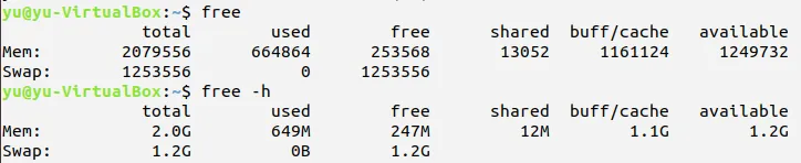 利用free命令显示内存的使用情况
