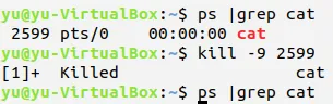 杀死进程cat;再次查看进程cat,看看是否被杀死