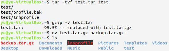把文件test.tar.gz改名为backup.tar.gz