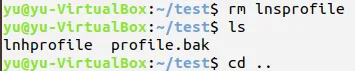 删除文件lnsprofile,显示当前目录下的文件列表,回到上层目录