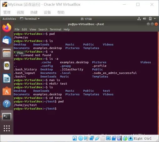 pwd;ls-a;man ls;mkdir test;ls;cd test;pwd