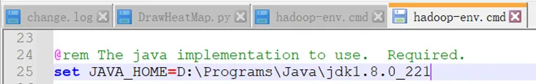 使用编辑器打开E:\Hadoop2.7.7\hadoop-2.7.7\etc\hadoop\hadoop-env.cmd