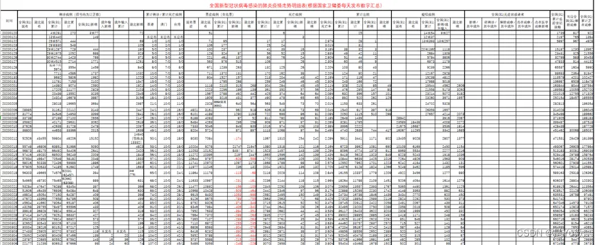 (注:此表为引用2020数学建模校赛附件《全国疫情发展事态统计》)