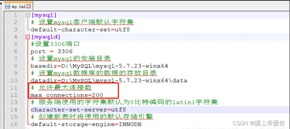 - 进入MySQL安装目录,打开my.ini或my.cnf文件;