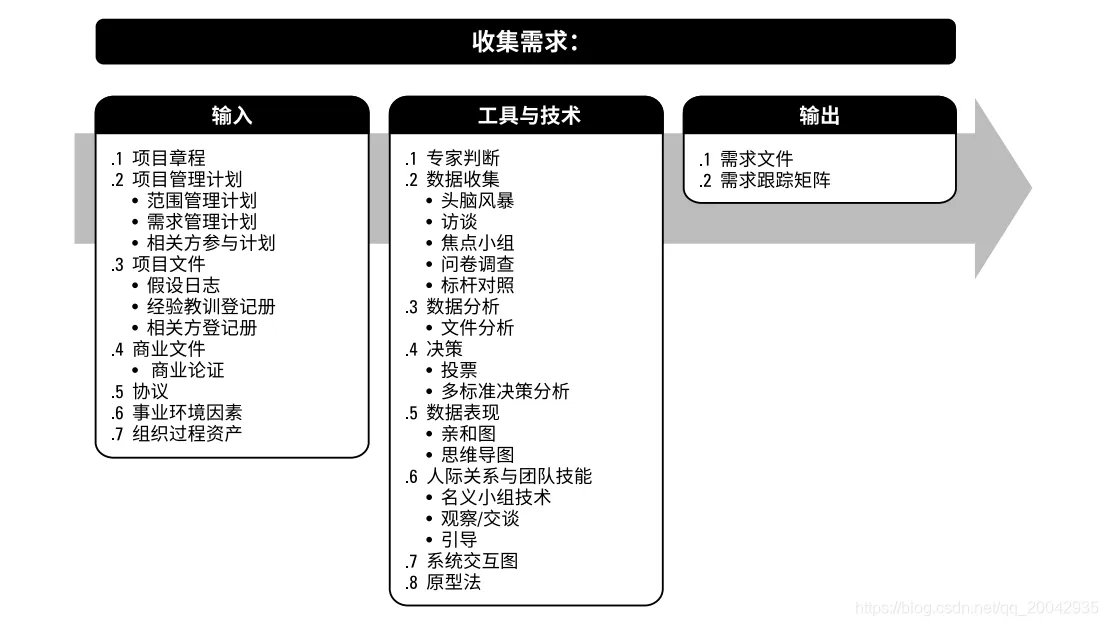 概念:为实现项目目标而确定、记录并管理相关方的需要和需求的过程。