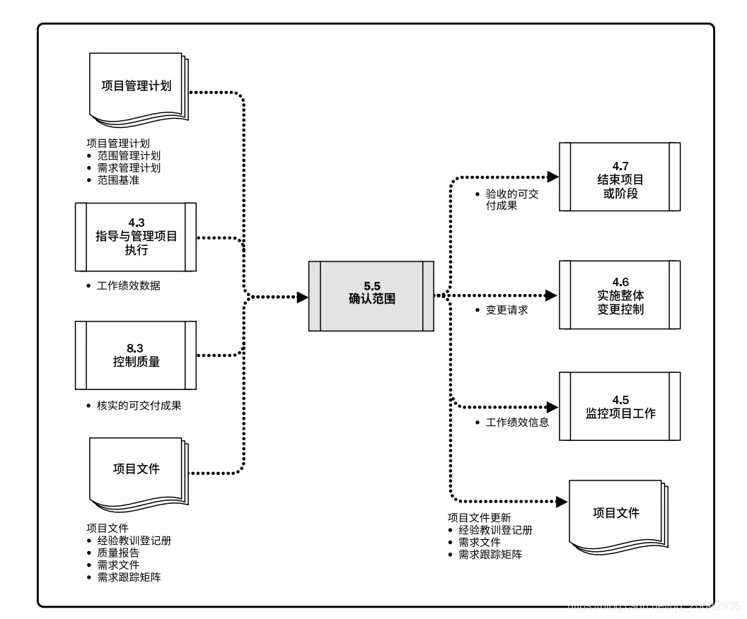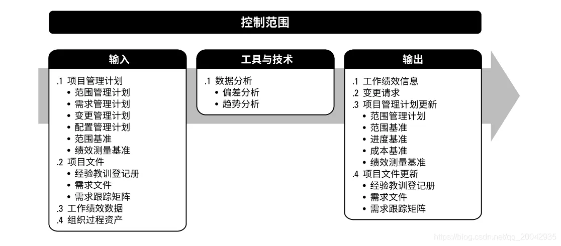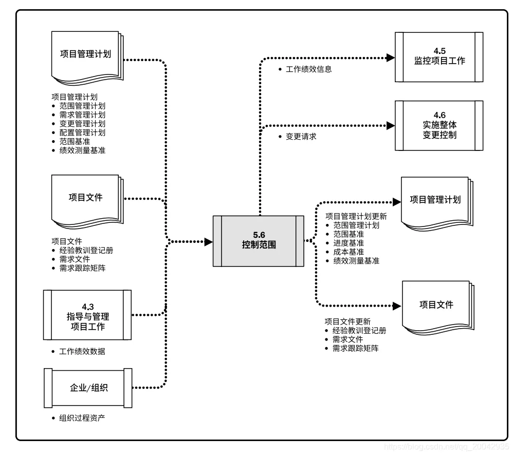 概念:监督项目和产品的范围状态,管理范围基准变更的过程。