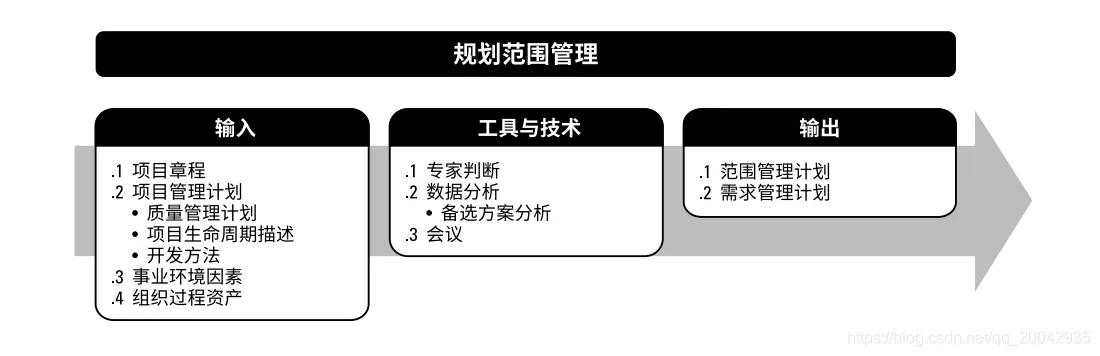 概念:为记录如何定义、确认和控制项目范围及产品范围,而创建范围管理计划的过程。