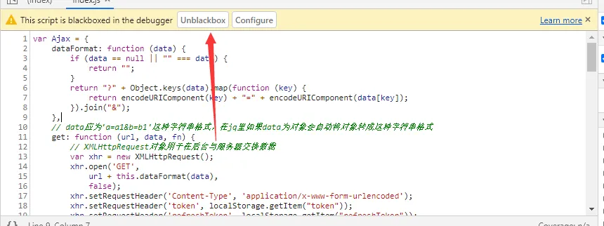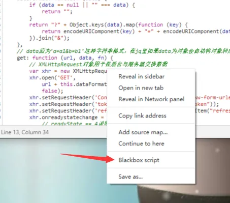放入“黑盒”的代码,我们执行的时候会跳过这些js,比如一些第三方框架源码我们就可以放入“黑盒”。当然我们可以点击上方的按钮移出“黑盒”