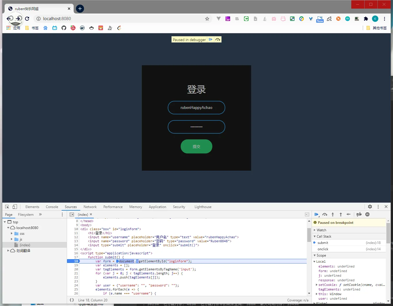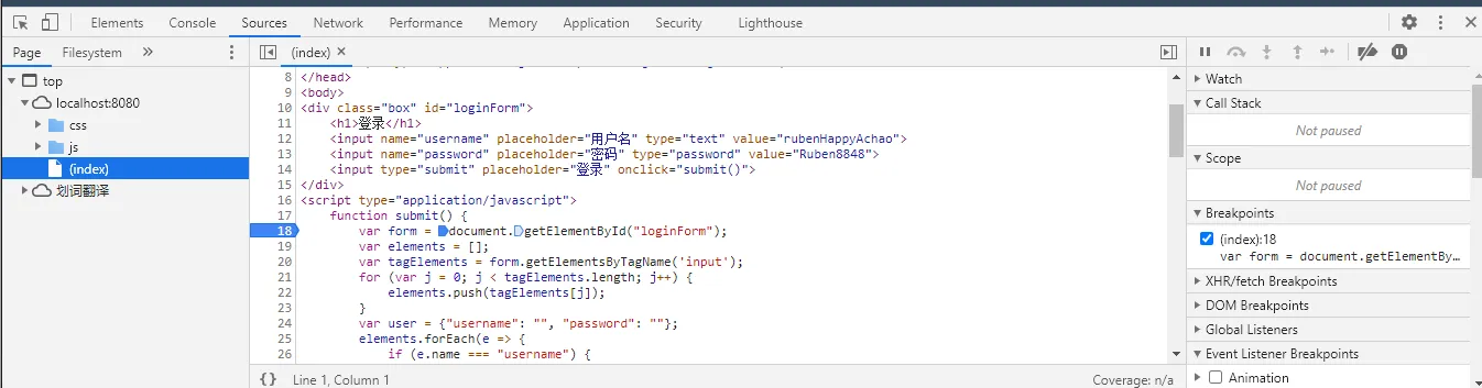 下方的Scope区域可以观测我们的参数,在Breakpoints区域则是我们设置的断点