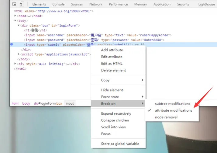 比如我这里给input元素设置了个当标签的属性发生修改时停止我们的程序