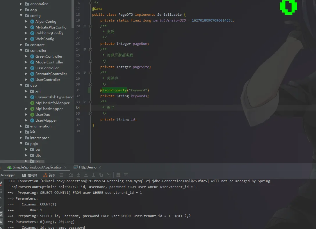 我们发送请求后debug可以看到确实接收到了