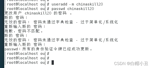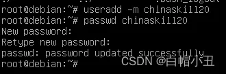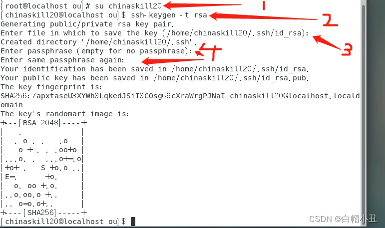 - 给ssh创建登录用户,题目要求只能在chinaskill20用户环境下免密钥登录,就需要数字证书验证身份