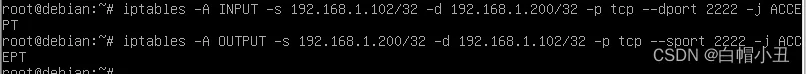 iptables -A INPUT -s sip -d dip -p tcp --dport 2222 -j ACCEPT iptables -A OUTPUT -d dip -d dip -p tcp --sport 2222 -j ACCEPT