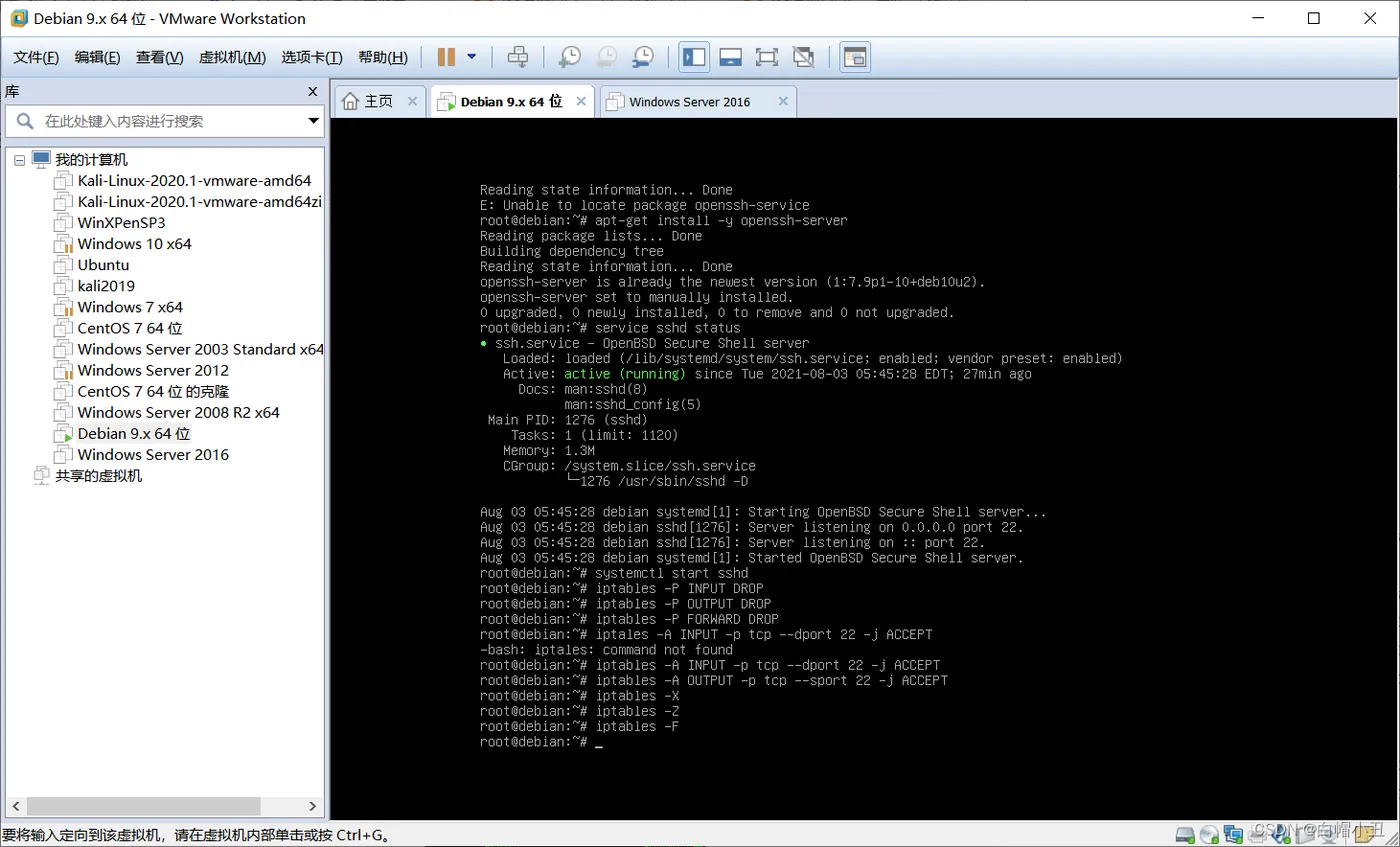 - 如果不是active就用systemctl start sshd激活,没有报错就可以