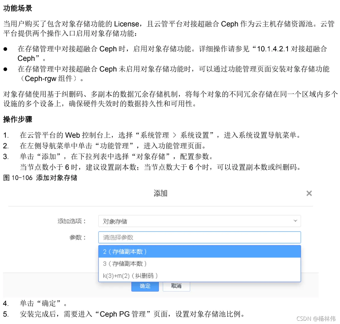 启用Ceph对象存储功能并配置存储用户后,在页面配置参数后,用户才能使用对象存储功能。