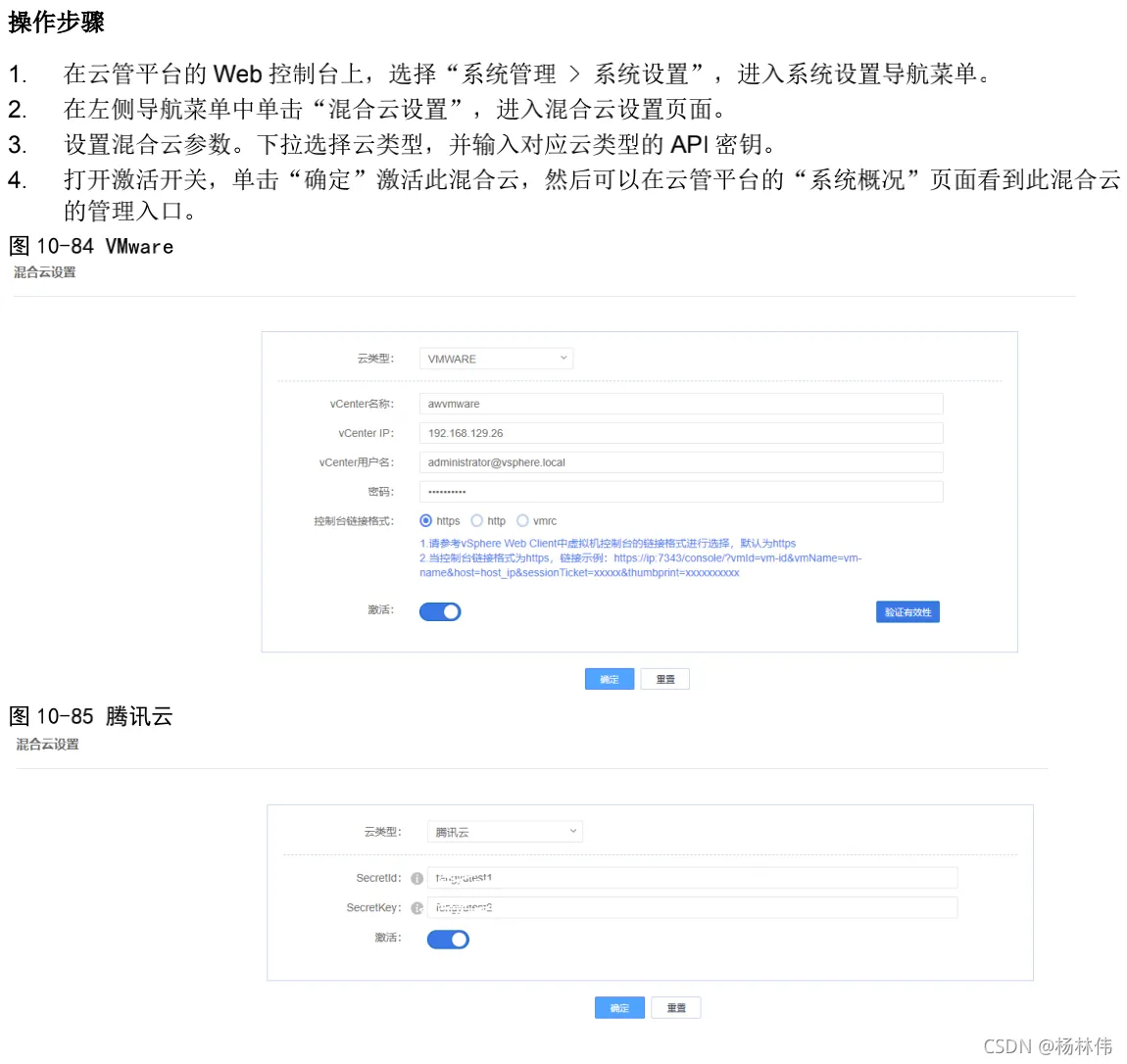 云管平台支持混合云管理模式,支持KVM、VMWare等虚拟管理,同时支持腾讯云、阿里云、AWS等公用云的管理,由云管平台提供统一管理。