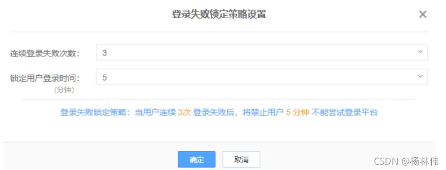 登录失败策略: 设置登录失败策略,用户连续输入错误登录信息超过规定次数后,用户被锁定,从而无法访问云管平台,保障云管平台的安全性。