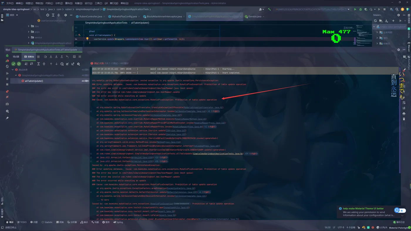 @Bean public MybatisPlusInterceptor mybatisPlusInterceptor() { MybatisPlusInterceptor interceptor = new MybatisPlusInterceptor(); PaginationInnerInterceptor paginationInnerInterceptor = new PaginationInnerInterceptor(DbType.MYSQL); // 阻止全表更新与删除 BlockAttackInnerInterceptor blockAttackInnerInterceptor = new BlockAttackInnerInterceptor(); // 设置请求的页面大于最大页后操作, true调回到首页,false 继续请求 默认false paginationInnerInterceptor.setOverflow(true); paginationInnerInterceptor.setMaxLimit(200L); interceptor.addInnerInterceptor(paginationInnerInterceptor); interceptor.addInnerInterceptor(blockAttackInnerInterceptor); return interceptor; }