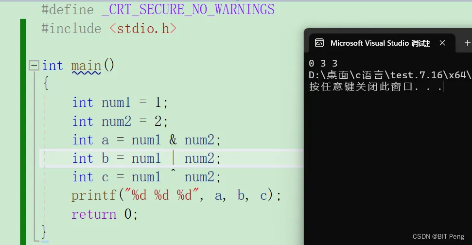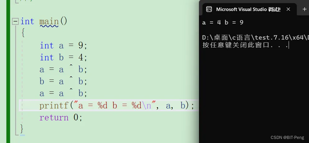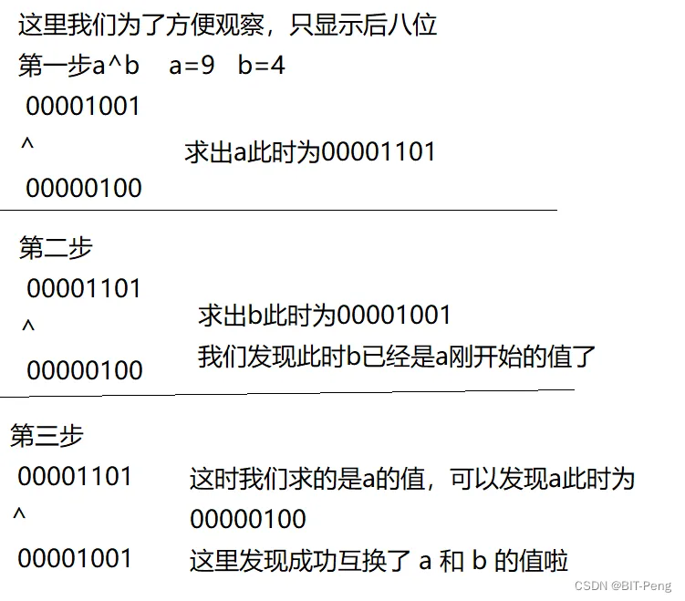 按位异或还可以在不用临时变量的情况下实现两个变量的互换