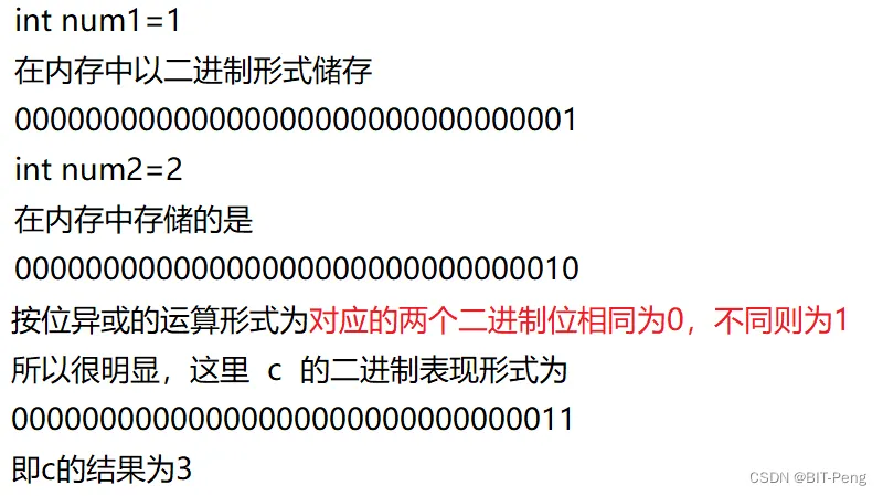 上边介绍了按位异或(^)的功能就是使参与运算的两个数的二进制位相异时为 1 ,相同为 0 .