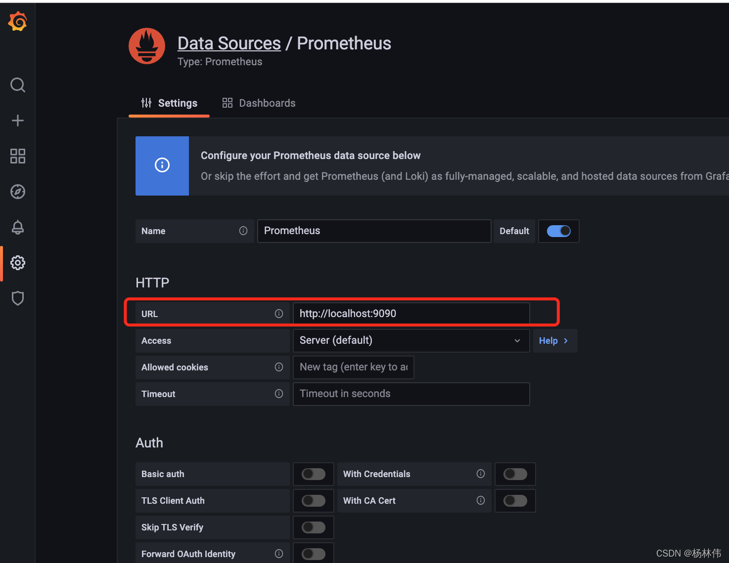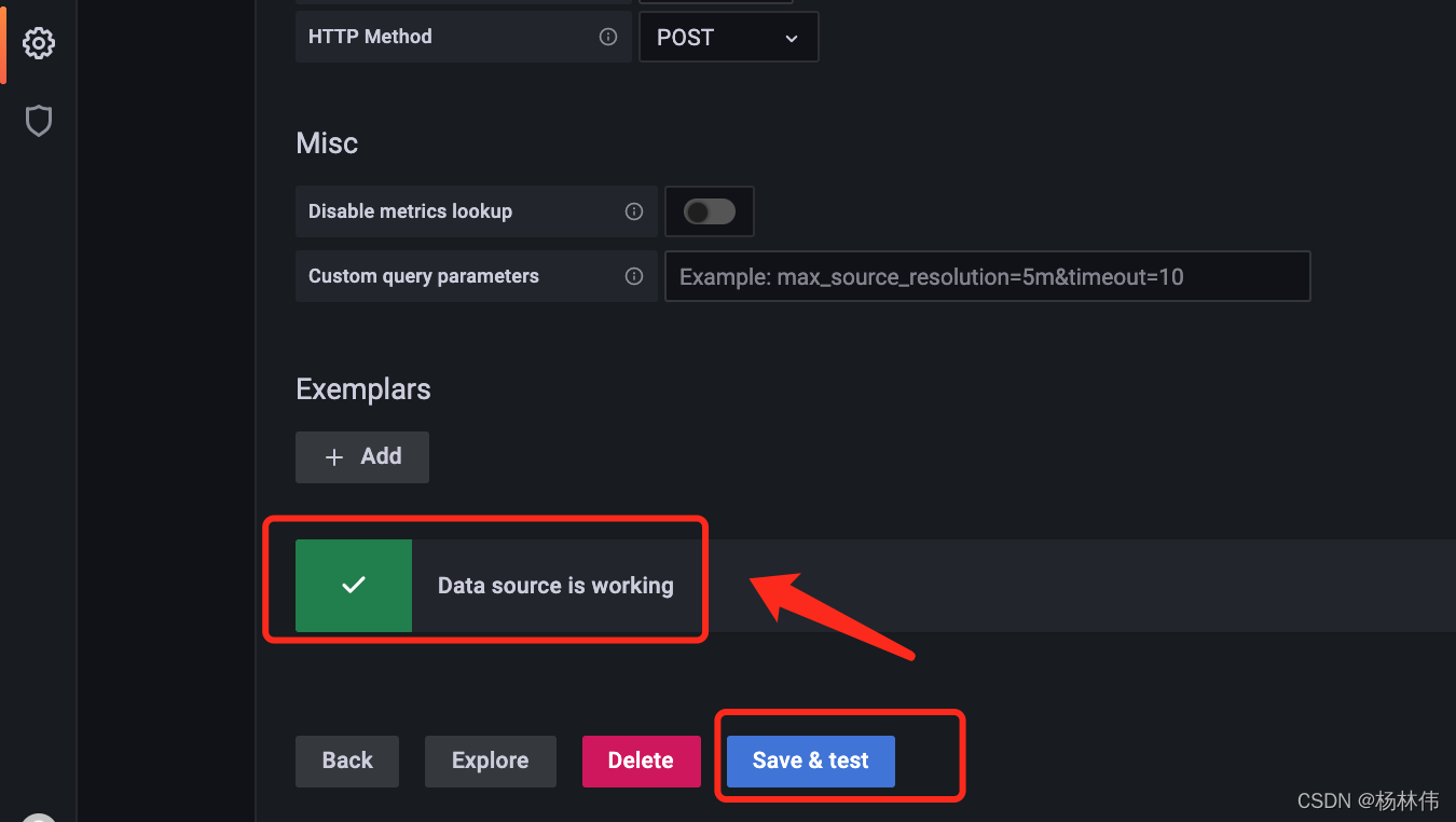 step8:输入prometheus地址并拉到最低部测试