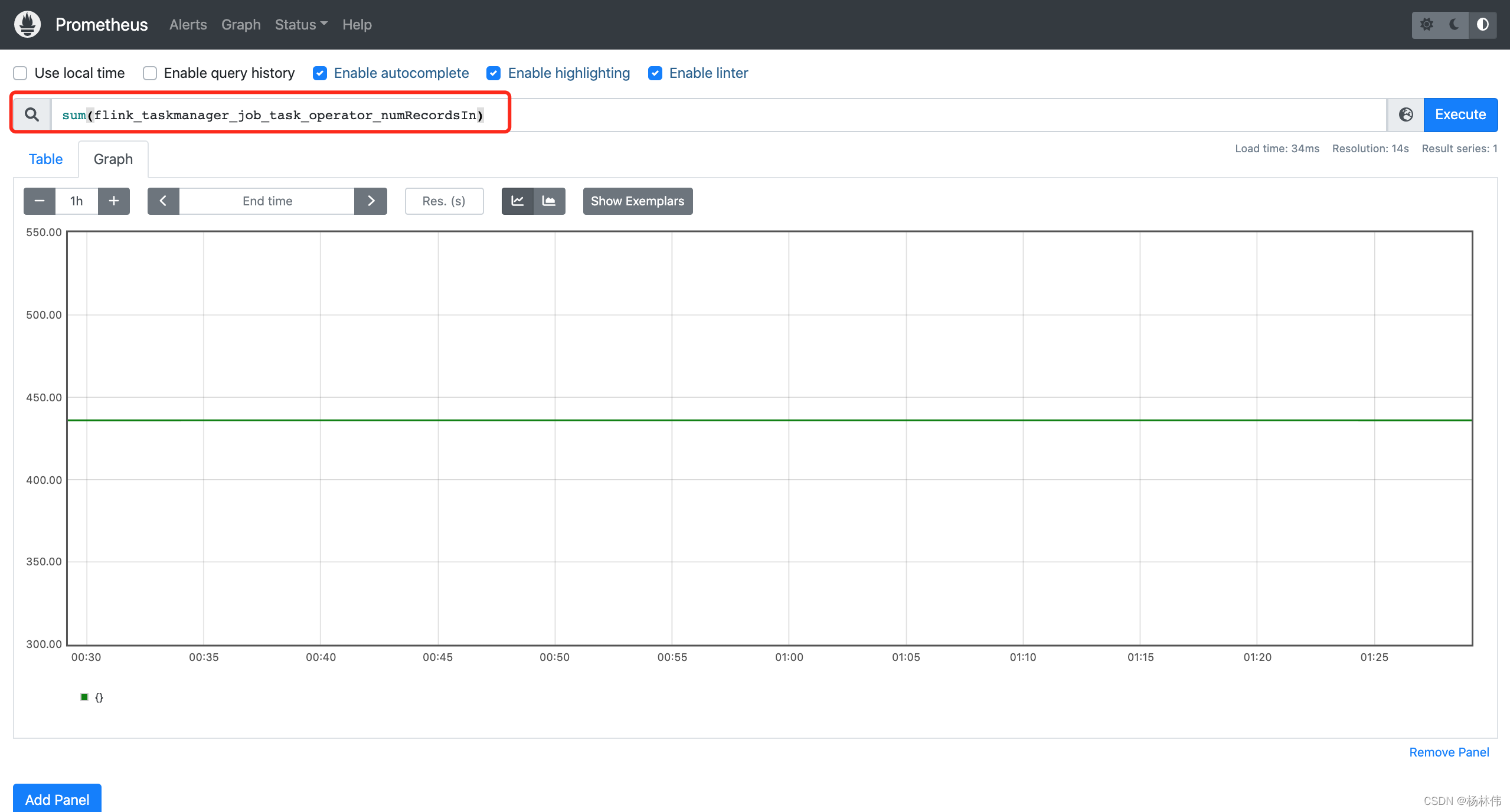 在Prometheus页面,输入查询语句,可以看到类似于如下接界面: