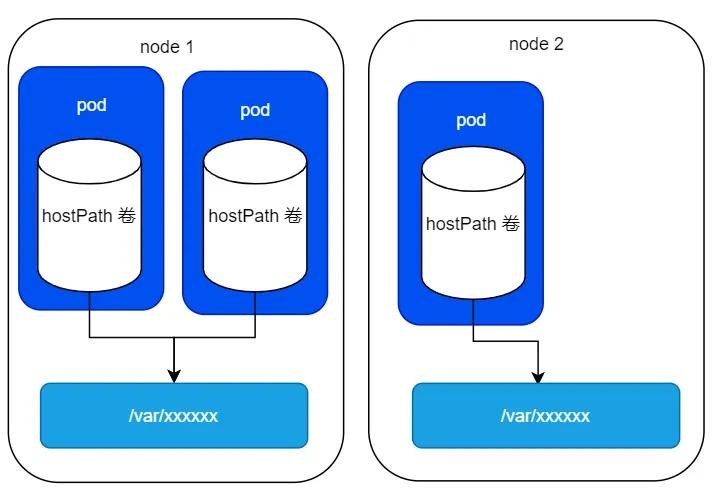 hostPath 卷会指向节点文件系统上的特定文件或者目录,我们同时在一个节点上运行并在 hostPath 卷中使用相同的路径的 pod ,就可以看到相同的文件了