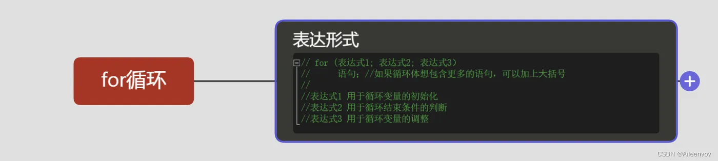 区别:for 和 while 在实现循环的过程中都有初始化、判断、调整这三个部分,但是 for 循环的三个部分⾮常集中,便于代码的维护,⽽如果代码较多的时候 while 循环的三个部分就⽐较分散,所以从形式上 for 循环要更优⼀些。
