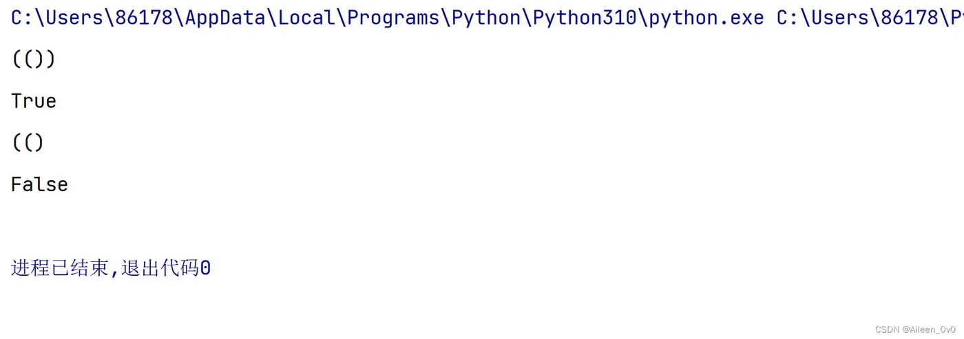 # 如何给其他类型的括号进行匹配---代码如下👇 class Stack:#Stack---->ADT def __init__(self): self.items =[] def isEmpty(self): return self.items == [] # 满足这些属性(行为)的是栈 def push(self,item): self.items.append(item) def pop(self): return self.items.pop() def peek(self): return self.items[len(self.items)-1] # def size(self): return len(self.items) def parChecker(symbolstring): print(symbolstring) #实例化栈(空栈) s = Stack() #括号匹配法则 balanced = True index = 0 while index < len(symbolstring) and balanced: symbol = symbolstring[index] if symbol in "([{": s.push(symbol) else: #右括号多了或左括号少了 if s.isEmpty():#判断栈 是否为空 balanced = False else: top = s.pop() if not matches(top,symbol): balanced = False index = index + 1 if balanced and s.isEmpty(): return True else: return False def matches(open,close): opens = "([{" closers = ")]}" return opens.index(open) == closers.index(close) result = parChecker("(())}") print(result) print(parChecker("[()]"))