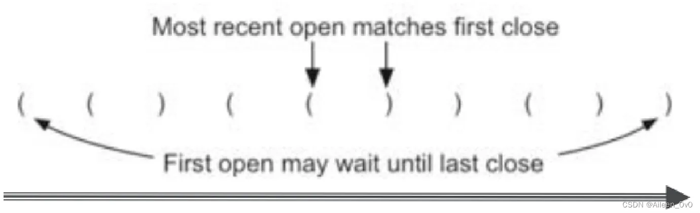 这样,第一个左括号(最早打开),就应该匹配最后一个右括号(最后遇到)