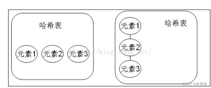 如果 equals 为 false 就不是 同一个元素。 哈希值相同 equals 为 false 的元素是怎么存储呢,就是在同样的哈希值下顺延(可以认为哈希值相 同的元素放在一个哈希桶中)。也就是哈希一样的存一列。如图 1 表示 hashCode 值不相同的情 况;图 2 表示 hashCode 值相同,但 equals 不相同的情况。