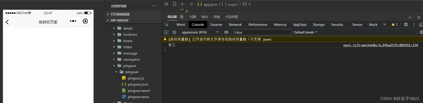 其中a是参数名,this.a是参数的实际JSON数据。跳转后接收的方式是在onLoad加载事件中取值
