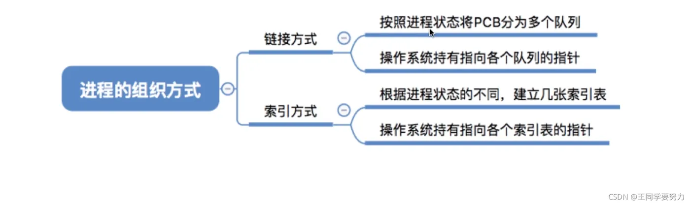 注:进程的组成讨论的是一个进程内部由哪些部分构成的问题,而进程的组织讨论的是多个进程之间的组织方式问题