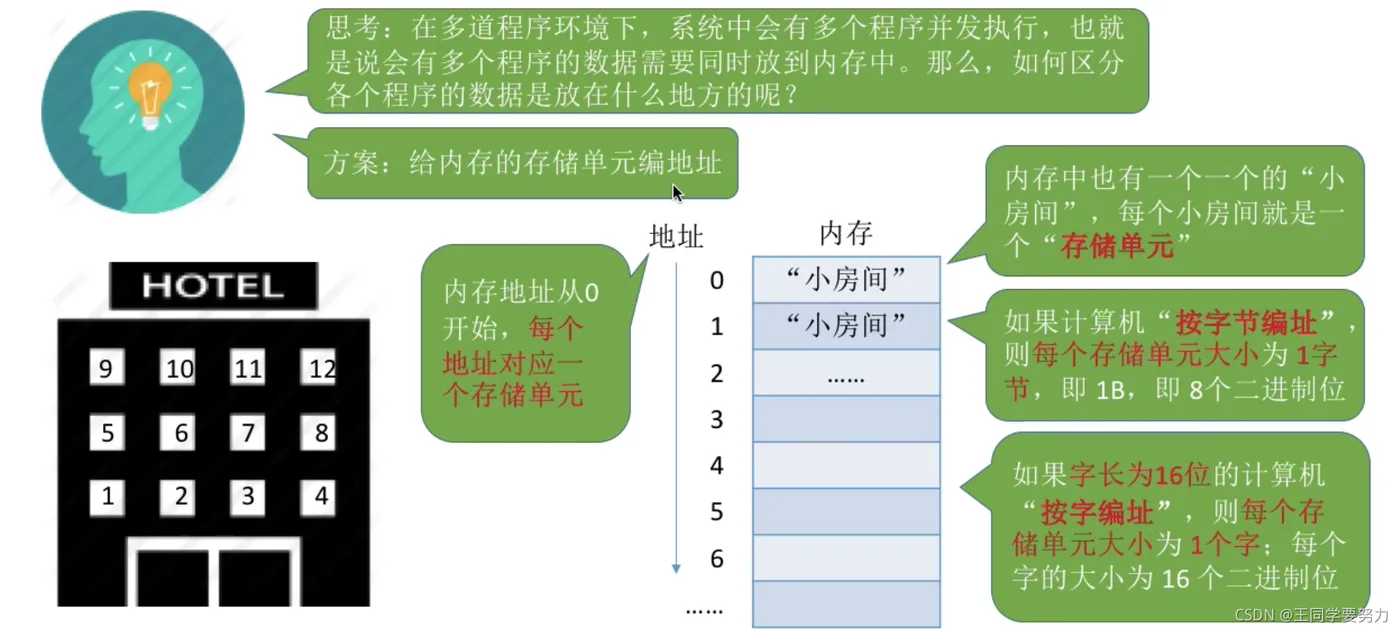 内存是用于存放数据的硬件,程序执行前需要放到内存中才能被CPU处理