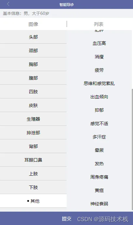2.支持以3D人体部位图的形式选择身体不适位置及点选该部位的症状;